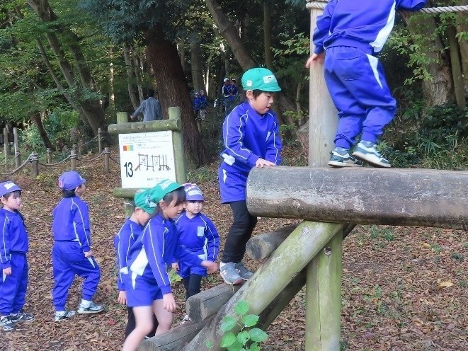 11月21日(金)、年長さんは、御所見の「藤沢市少年の森」に遠足に行きました。お天気に恵まれて、穏やかな日差しのなか、森の中のフィールド・アスレチックを元気に楽しみました。みんなで食べたお弁当、とても美味しかったですね。とてもいい時間でした♪
