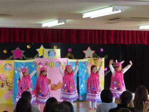 ・どのクラスも子ども達と先生が協力して創り上げたオリジナルの劇やオペレッタを精一杯演じました。そして元気いっぱいに歌を歌ってくれました。劇も歌もこれまで練習してきた中で一番上手にできました。