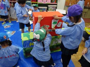 ・10月24日(木)と25日(金)に本園自慢の行事である「幼稚園祭」が開催されます。今年のテーマは、「ドキドキアニマルランド」です。園では今、幼稚園祭に向けての選択保育が行われていて、子ども達は「動物」をテーマにして様々な大型遊具の製作に取り組んでいます。子ども達が創り出す動物の世界を楽しみにしていてください♪