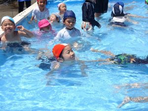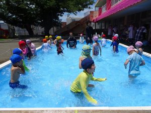 ・6月24日(月)、今年も子ども達が楽しみにしていたプール開きの日がやってきました。夏の陽ざしが降り注ぐ絶好のプール日和となり、子ども達は冷たい水に大はしゃぎでした。今年もたくさんプール遊びができるといいですね!
