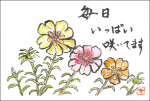 アーティストの方は、ご家族と一緒に、花を育てて下さっただけでなく、松葉牡丹をイメージしたステキな作品を創って下さり、先日、絵はがきや写真集などと一緒に、幼稚園まで郵送して下さいました。(以下のリンクから写真集をご覧いただけます。)