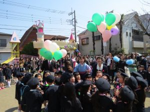 ・園庭で飛ばした風船も青空に吸い込まれるように高く舞い上がっていきました。これからもたくさんのお友だちを作って、たくさん遊んで たくさん勉強して、優しく立派な人に成長していって下さいね。先生たちはいつまでも応援しています!