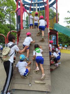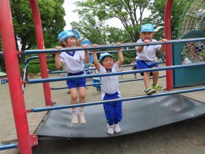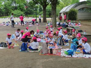・ 5月16日(金)年中さんが遠足で湘南台公園に行きました。ほどよい日差しで暑すぎず、遠足日和となり、湘南台公園には近隣小学校や幼稚園から数団体が遠足に来ていました。そんな中でも六会幼稚園の子ども達は、ルールを守って遊具広場でたくさん遊びました。その後、広場で山口先生にも遊んでもらいました。みんなで食べたお弁当も美味しくて、ちょっぴり疲れたけど大満足の一日でした♪