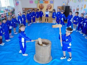 ・12月のお誕生会をかねて、みんなで食べた「あんこもち」、とっても美味しかったですね!