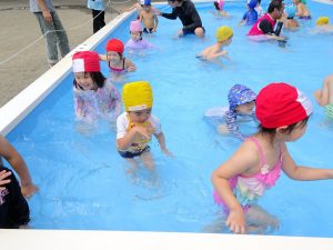 ・7月下旬から厳しい暑さが続いていますが、夏期保育2日目は、プールを楽しみました。7月は天候に恵まれない日が多かったのでようやくやって来たプール日和、みんな大興奮で水をかけ合ったり、ワニ歩きをしたり、水にもぐったり…と思 […]