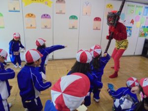 ・2月3日(月)は節分で、豆まきをしました。突然やって来た鬼にちょっとびっくりしてしまったお友だちもいましたが、みんなで力を合わせて鬼を退治しました。今年もみんな元気で楽しく過ごせますように! ・