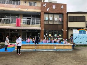 あいにくの曇り空でしたが、気温と水温を確認し、プールの保育を行いました。最初は緊張気味のお友だちもいましたが、だんだんとエンジンがかかってきて、園庭いっぱいにお友だちの歓声が広がっていました。今度のプールの保育も、みんな […]