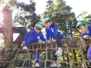 11月22日(金)穏やかな秋晴れの中、年長さんが「少年の森」に遠足に行きました。前日までの雨で地面がぬかるんでいたり、濡れていて使えない遊具が少しだけありましたが、ほぼ予定通りのアスレチックを楽しむことができました。園庭 […]