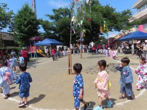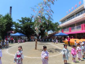 七夕まつり、みんなの願い事がかないますように! ・7月4日(金)に学年ごとに七夕まつりを行いました。保護者のお家から分けていただいた大きな2本の竹に願い事を書いたたんざくや色とりどりの笹飾りをお家の方と一緒に飾ってから、歌を歌って、盆踊りをおどりました。とってもかわいく踊れました。空にとどくほど大きな声で歌えたので、みんなの願い事がかなうといいですね。 ・