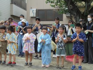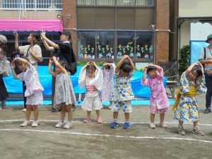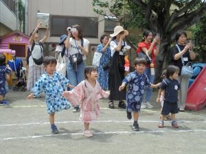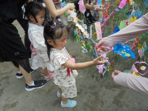 保育行事:七夕まつり 雨で一日延期のあと、7月2日はお天気に恵まれ、みんなで七夕まつりを楽しみました。みんなでお歌を歌って、願いを込めた短冊を大きな竹にみんなで飾り、みんなで踊りを楽しみました。みんな笑顔で元気にがんばっていました。 六会幼稚園のよい子の願いは、きっとかないますね。 保護者の皆様のご協力に感謝申し上げます。 ・